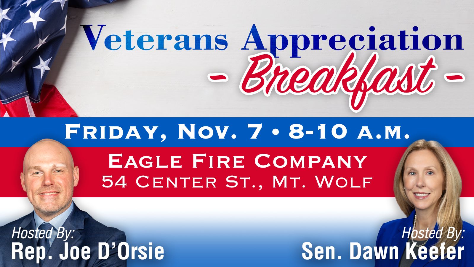 In this Update: Join Us for a Veterans Appreciation Breakfast Stop by My Open House at the Dillsburg Farmers Fair A Candid Conversation on What You Scared to Say Podcast Attend a School Property Tax Elimination Town Hall Providing Loan Interest Forgiveness to Counties and Head Start Applications Accepted for Keystone ChalleNGe Academy January Class […] [Read More]