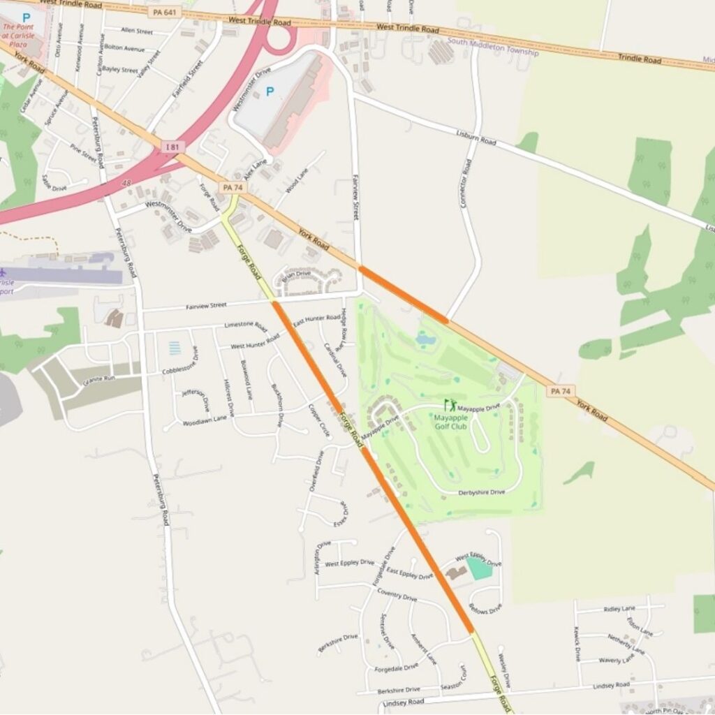- Forge Road (Route 2003) from Fairview Street to Forgedale Drive in South Middleton Township, Cumberland County. There will be lane closures under flagging on Forge Road.